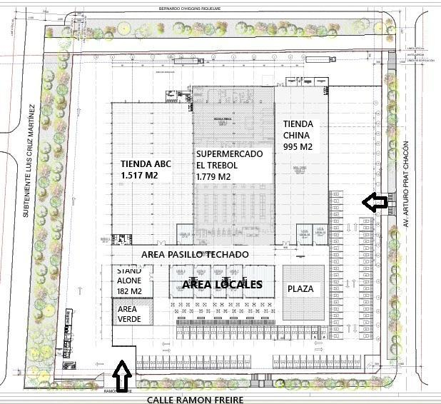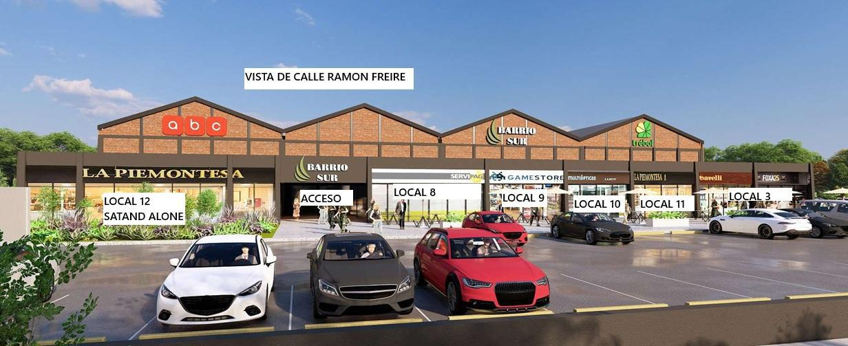 Se encuentra ubicado en calle Ramon Freire 086, esquina con avenida Arturo Prat, eje salida sur de San Carlos, sector sur poniente de San Carlos. El nuevo Centro Comercial Barrio Sur tiene una superficie construida de app.6.000 m2. y ya están confirmados un Supermercado El Trébol, una Tienda Mediana, y una Tienda mejoramiento hogar, junto con 15 locales comerciales de distintos tamaños. Fecha apertura estimada diciembre delaño2026., y entrega estimada de locales septiembre 2026. La Comuna de San Carlos posee una población estimada de 57.061 habitantes, además si sumamos área de influencia cercanas como Coihueco, Ñiquen, San Fabian, San Nicolas, que se abastecen de productos y servicios en San Carlos. En total el área de influencia de 112.698 habitantes. Contará con mas 92 estacionamientos para vehículos. También tendrá estacionamientos para bicicletas y motos de reparto delivery